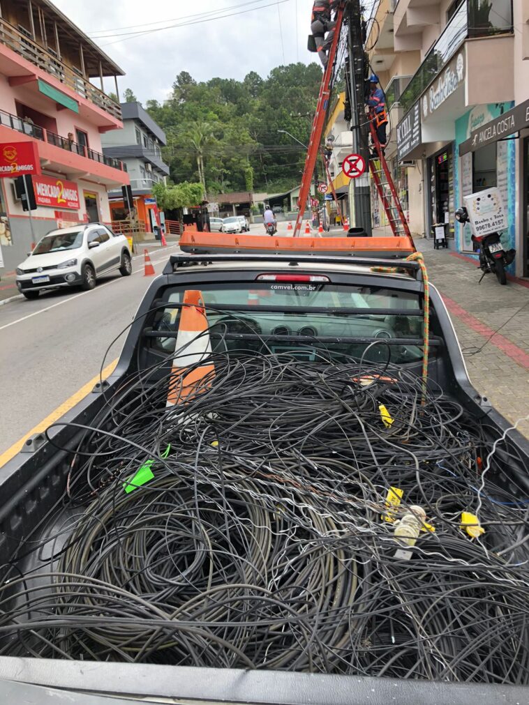 A Prefeitura de Balneário Camboriú, por meio de uma força-tarefa comandada pela Contribuição para Custeio da Iluminação Pública (COSIP), finalizou nesta quarta-feira (22), a retirada de fiação obsoleta e inutilizada da Avenida Palestina. Ao todo, foram retirados mais de 10km de fios inutilizados.