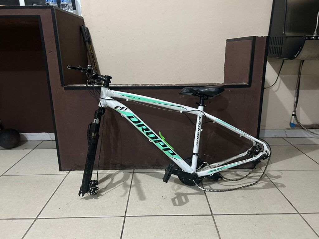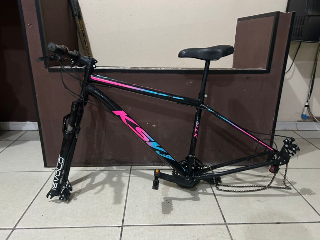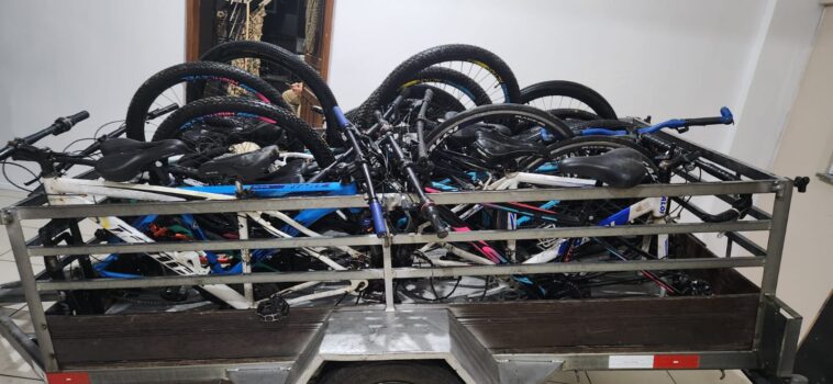 No terreno do imóvel foi localizado um carretinha, carregada com 10 bicicletas provenientes de furtos.