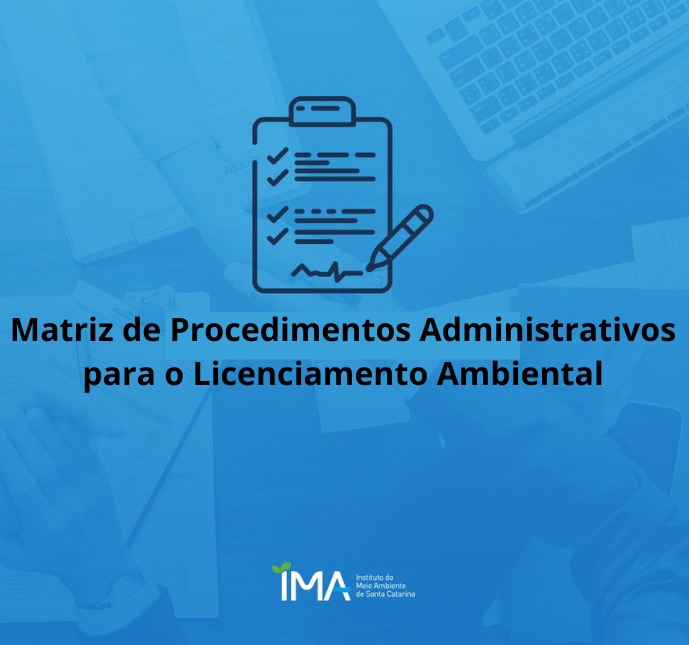 O Instituto do Meio Ambiente de Santa Catarina (IMA) informa que a Matriz de Procedimentos Administrativos para o Licenciamento Ambiental é um espaço que concentra diversas orientações relevantes relacionadas ao licenciamento com o objetivo de facilitar o acesso à informação.