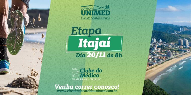 Estão abertas as inscrições para a etapa Itajaí do Circuito de Corridas Unimed, que acontecerá no próximo dia 20 de novembro, na Praia Brava.