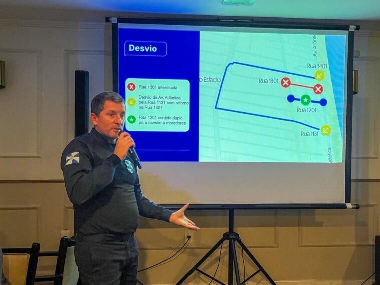 Já na próxima segunda-feira (30), a Rua 1301 e o trecho da Avenida Atlântica em frente à via serão interditados para o tráfego de veículos. Durante o período, o desvio será realizado pela Rua 1131, com passagem pela Avenida do Estado e retorno à Avenida Atlântica pela Rua 1401. Conforme a obra avance, trechos da via serão liberados para acesso dos veículos aos edifícios.