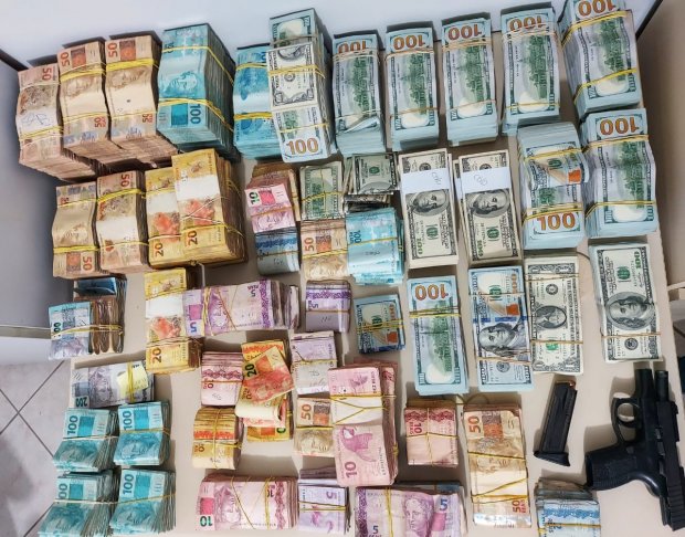 Os policiais civis contaram o dinheiro da apreensão por mais de 3 horas, sendo apreendido entre dólares, euro e reais a quantia de 4.130.000,00. Foram apreendidos R$ 528.209,00, US$ 643.035 e 1.200 euros.
