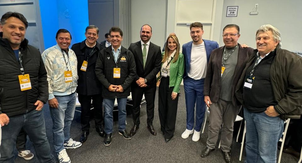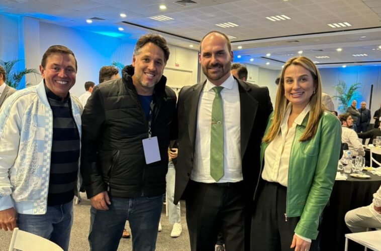 Na mesma mesa participaram o ex-governador Leonel Pavan, pré-candidato a prefeito de Camboriú, Emílio Dalçoquio, Júnior Pavan e Eduardo Bolsonaro.