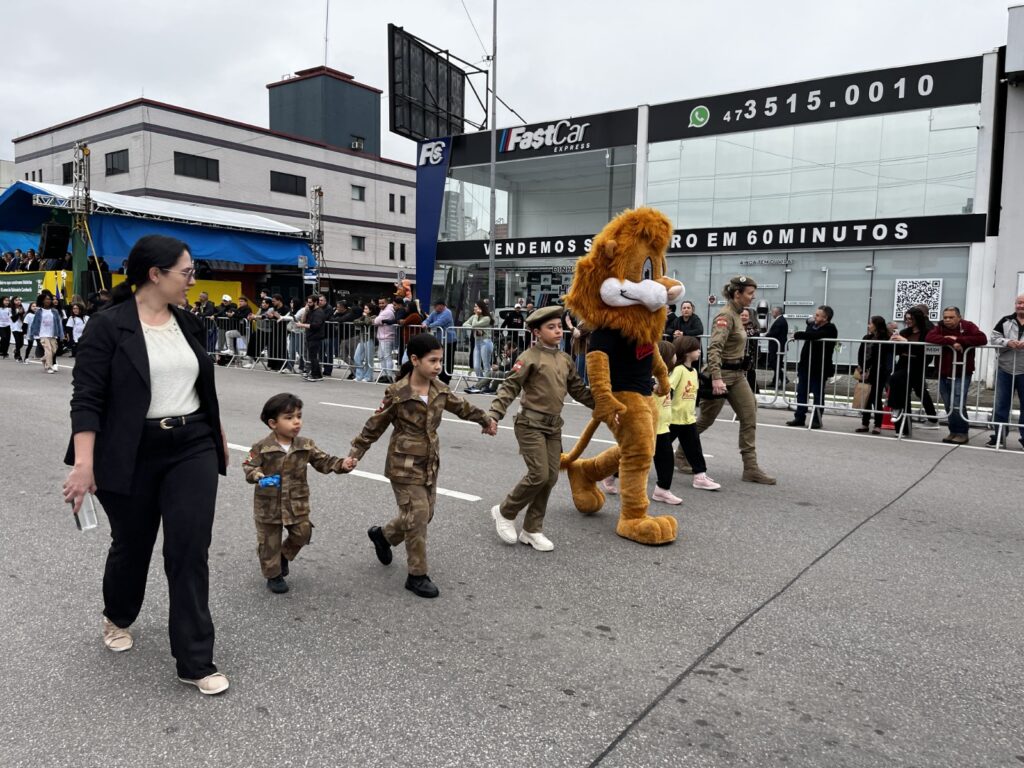 Pedro Dantas Rosa, de 7 anos, desfilou pela primeira vez neste domingo (7) e ajudou a carregar a bandeira do Brasil pelo grupo de escoteiros Leão do Mar. “Foi legal, foi muito divertido carregar a bandeira, de ficar lá na frente com todo mundo, eu gostei bastante de participar”.