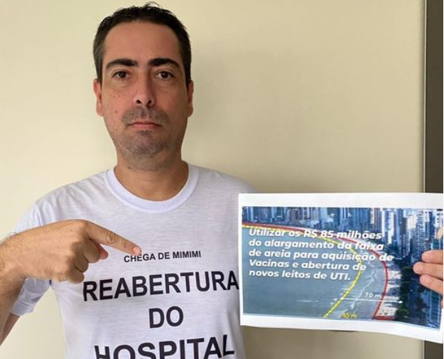 O vereador Marcelo Achutti (MDB) protocolou indicação solicitando ao Poder Executivo que utilize os R$ 85 milhões destinados para o alargamento da faixa de areia da praia central em investimentos com novos leitos de UTI para o combate ao Covid-19, e também para a compra das vacinas contra a doença e insumos necessários.