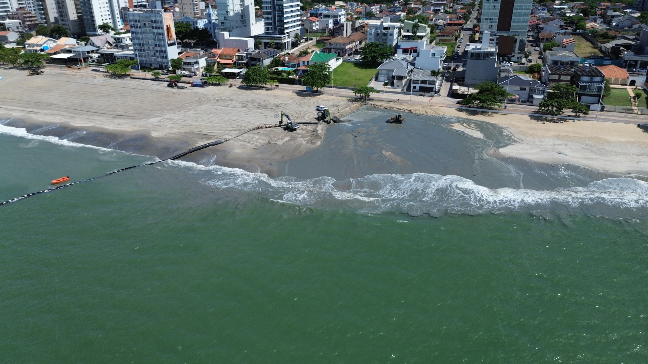 A megaobra de alargamento da faixa de areia da Praia Central de Balneário Piçarras segue em ritmo acelerado e já alcança aproximadamente 70% de execução, avançando em direção ao molhe da Avenida Getúlio Vargas. Dos cerca de 2 quilômetros previstos no projeto, já foram concluídos aproximadamente 1.200 metros.