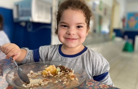 A alimentação escolar das unidades municipais segue cardápios distintos, oferecidos de acordo com a faixa etária da criança. Os itens ofertados, como cereais, leguminosas, massas – normais e integral; tubérculos, verduras, vegetais, frutas, carnes, ovos, leite, panificados, e fórmulas infantis para crianças de 4 a 12 meses, podem apresentar diferentes texturas, de acordo com a idade. Bolachas, bolos e pães são caseiros, feitos nas unidades pelas merendeiras e o iogurte ofertado às crianças de zero a 3 anos, é natural zero açúcar. O cardápio é variado, com a presença diária de frutas, verduras, legumes, dentre outros alimentos essenciais para a formação. Para este ano, a Secretaria de Educação acrescentou, para a Educação Infantil, alimentos como arroz integral, cacau, erva doce, feijão vermelho, geleia sem açúcar, manteiga, milho em conserva, suco de maçã , uva passa preta e morango.