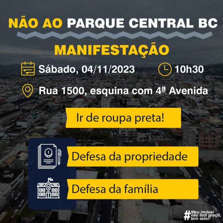 Neste sábado (4) moradores de Balneário Camboriú saem as ruas novamente numa manifestação pacífica contrários à implantação do Parque Central BC, de autoria do prefeito Fabrício de Oliveira. O ato está marcado para iniciar às 10:30h com a distribuição de adesivos contendo os motivos do temor que aflige principalmente os moradores das proximidades da Quarta Avenida. São famílias que vivem momentos de angústia diante da possibilidade de perder seus imóveis. Esse temor ampliou depois que Fabrício deixou de comparecer na Câmara Municipal para prestar explicações a respeito do Projeto do Parque Central prevê a desapropriação. em massa.. Na oportunidade, o ex-prefeito Rubens Spernau, atual secretário de Planejamento, recebeu uma estrondosa vaia após anunciar a ausência do prefeito Fabrício.