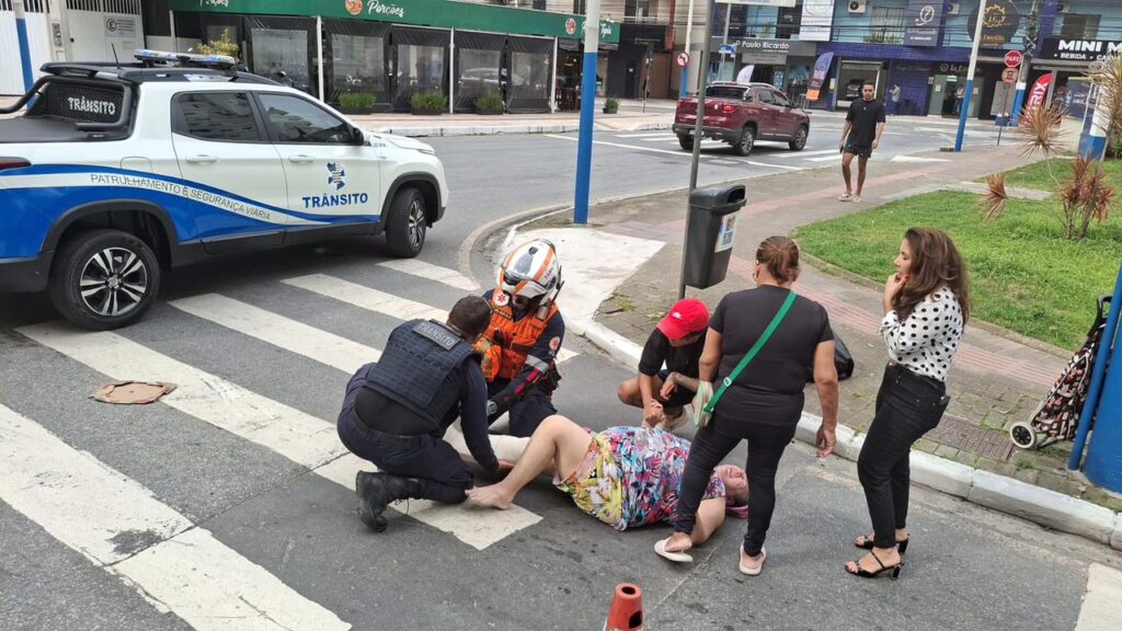 Na tarde desta quinta-feira (16), por volta das 15h, a guarnição dos Agentes de Trânsito estava em rondas, quando verificaram que uma mulher de 53 anos foi atropelada enquanto atravessava na faixa de pedestres na Rua 3614, esquina com a 3ª Avenida. O veículo envolvido, um BMW 320i, acessava a via quando acabou atingindo a pedestre.