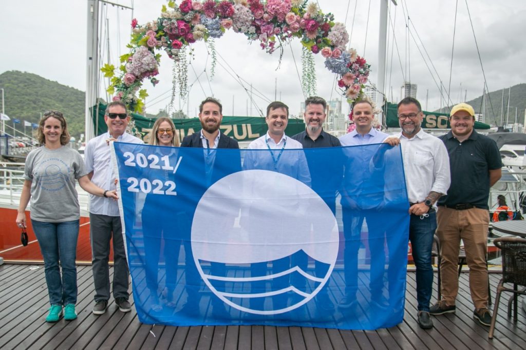 Na manhã desta quarta-feira (17), a Marina Itajaí reuniu autoridades, imprensa e visitantes para a cerimônia de certificação e hasteamento da Bandeira Azul, selo internacional recebido para a temporada 2021/2022. O símbolo comprova que no complexo náutico há turismo sustentável, educação ambiental e gestão ambiental. É a primeira vez que o município de Itajaí recebe a certificação internacional.Na ocasião, o diretor da Marina Itajaí Carlos Gayoso de Oliveira também falou em seu discurso sobre inúmeras ações e eventos realizados ou apoiados pelo complexo náutico ligados à sustentabilidade. Além disso, é a única Marina do Brasil com certificação ISO 14.001/2015, de prevenção e proteção ao meio ambiente.