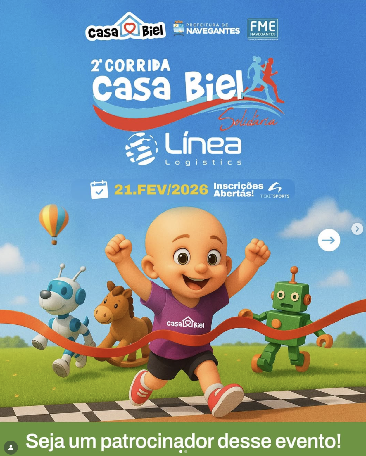 No próximo dia 21 de fevereiro, as ruas de Navegantes serão palco de um evento que une superação esportiva e responsabilidade social. A 2ª Corrida Solidária Casa Biel acontece a partir das 18h30, na Avenida Prefeito Cirino Adolfo Cabral (próximo à Arena de Eventos, no Pontal), com o objetivo de conscientizar a população sobre a importância do diagnóstico precoce do câncer infantojuvenil.