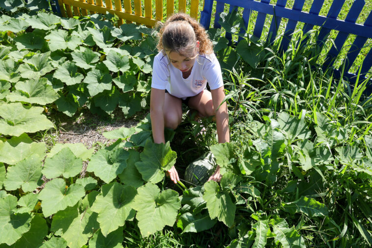 Perto do refeitório, há diferentes caixas para que os estudantes possam descartar embalagens, papel usado em sala de aula, entre outros. O lixo orgânico produzido na escola passa por um processo de transformação. Por meio das leiras de compostagem, se transforma em adubo e ajuda a alimentar o ciclo de vida na unidade, retornando para uma horta para virar alface, tomate, abóbora e outros alimentos plantados ali.