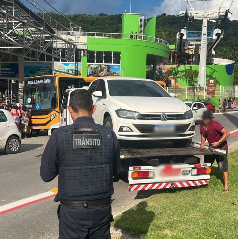 Agentes de Trânsito realizaram uma operação de fiscalização voltada ao combate de estacionamento irregular na região da Avenida Rodesindo Pavan (Interpraias).