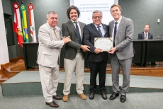 Saudando os homenageados da noite, o ex-governador Leonel Pavan destacou que foi autor da lei que criou a comissão de turismo no Congresso Nacional, o que levaria posteriormente à criação do Ministério do Turismo, assim como a implantação do Geoparque em Santa Catarina, na condição de secretário de Turismo, o terceiro maior do país.