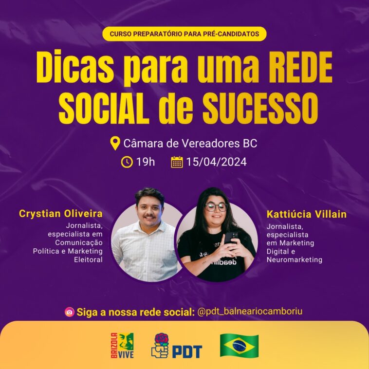 Com o tema “Dicas para uma rede social de sucesso” a aula irá focar em noções de marketing eleitoral e mídias sociais, a ser ministrada pelos especialistas em comunicação Kattiúcia Villain e Crystian Oliveira.