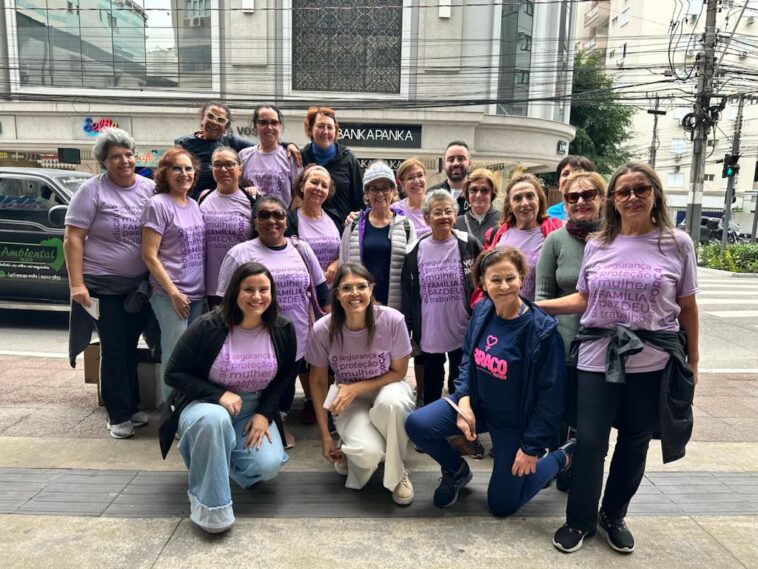 O pedágio de conscientização sobre a violência contra a pessoa idosa, realizado hoje (dia 29) em Balneário Camboriú, foi um sucesso. Dezenas de motoristas que passaram pela confluência das avenidas Brasil e Alvin Bauer entre 11h e 12h15 receberam material informativo sobre o tema e um bombom. A ação foi promovida pela vereadora Juliethe Nitz, com a participação de voluntários 60+. A atividade chamou atenção para o “Junho Violeta”, mês de conscientização sobre o tema.
