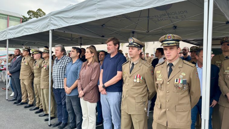 Na tarde desta terça-feira, 6 de maio, a Polícia Militar de Santa Catarina (PMSC) celebrou seus 190 anos de história com uma solenidade realizada na sede do 12º Batalhão de Polícia Militar (BPM), em Balneário Camboriú. O evento reuniu autoridades civis e militares, além de membros da comunidade, em um momento marcado por homenagens, reconhecimento e celebração da trajetória da corporação.
