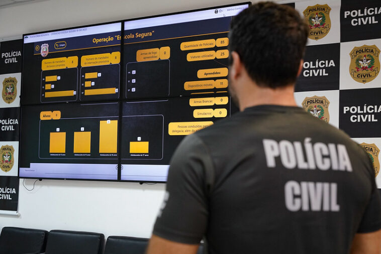 O delegado-geral da Polícia Civil de Santa Catarina, Ulisses Gabriel, divulgou nesta quarta-feira (19) o resultado da Operação Escola Segura, ação capitaneada pelo Ministério da Justiça e Segurança Pública, realizadas nos estados de Santa Catarina, Rio de Janeiro, São Paulo, Pernambuco e Paraná. Ao todo foram apreendidos 10 adolescentes, cumpridos 13 mandados de busca e apreensão e 11 medidas para afastamento de sigilo de dados em face dos adolescentes.