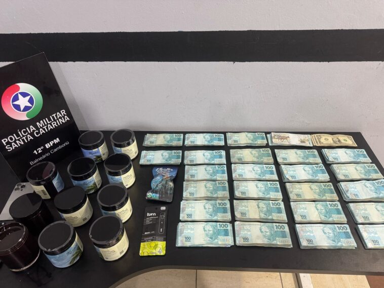 Nas proximidades da Rua 1000, ao perceber que seria abordado, o condutor parou e adentrou em uma galeria de lojas, tentando deixar sobre o balcão de uma loja dois refis de THC. Contudo, foi abordado, confirmando a prática criminosa.
