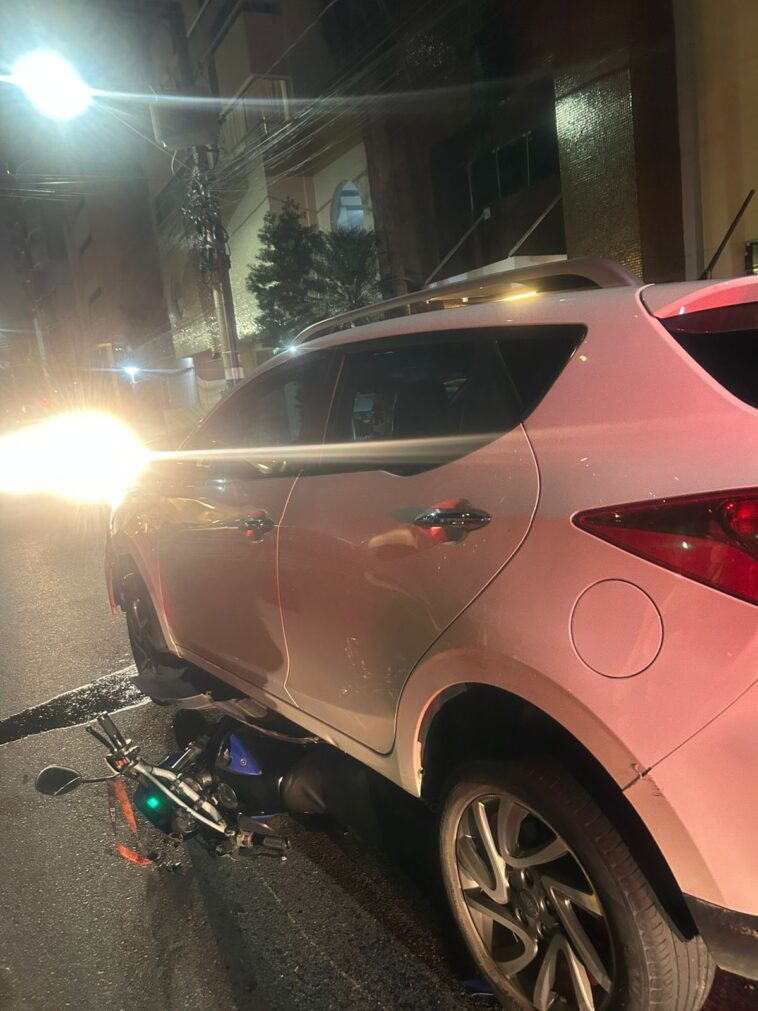 A Polícia Militar de Santa Catarina, por meio do 12º BPM, atendeu uma ocorrência envolvendo uma motocicleta e um carro, na Rua 3100, próximo ao numeral 230, no centro de Balneário Camboriú.