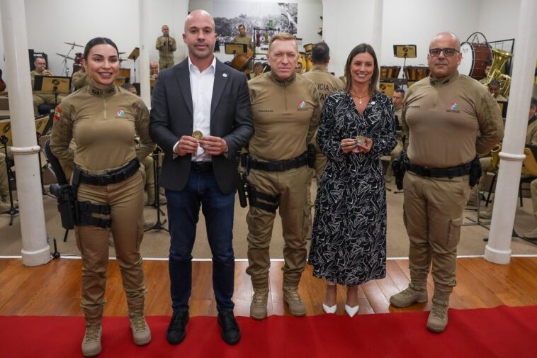 Além disso, aconteceu a entrega da moeda Challenge Coin ao Secretário de Estado da Comunicação (Secom), João Paulo Gomes Vieira e à secretária adjunta da Secom, jornalista Renata Furlanetto. Essas moedas tradicionalmente simbolizam respeito e reconhecimento por ações que contribuíram para a corporação e a sociedade, representando pertencimento, honra e lealdade.
