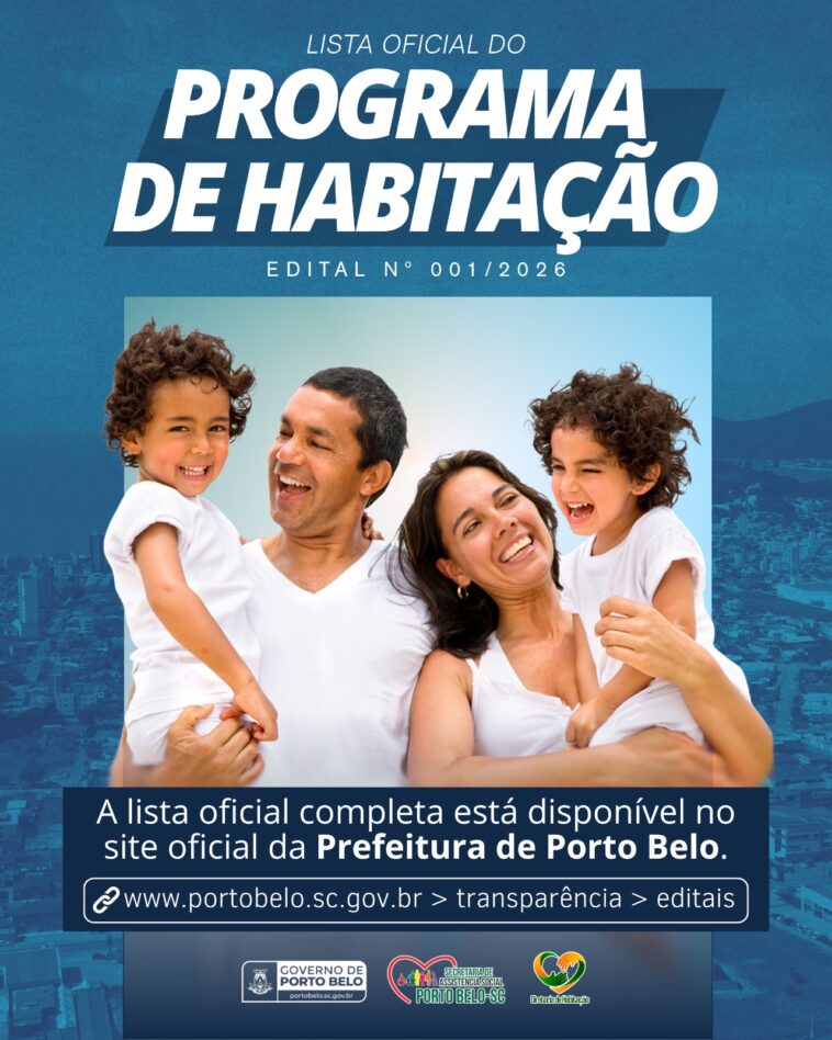 O Governo de Porto Belo divulgou nesta sexta-feira, por meio da Secretaria de Assistência Social, a lista oficial dos contemplados para o Programa de Habitação de Interesse Social, referente ao Edital nº 001/2026. A publicação marca um momento importante para muitas famílias do município que aguardavam pela oportunidade de conquistar a casa própria.