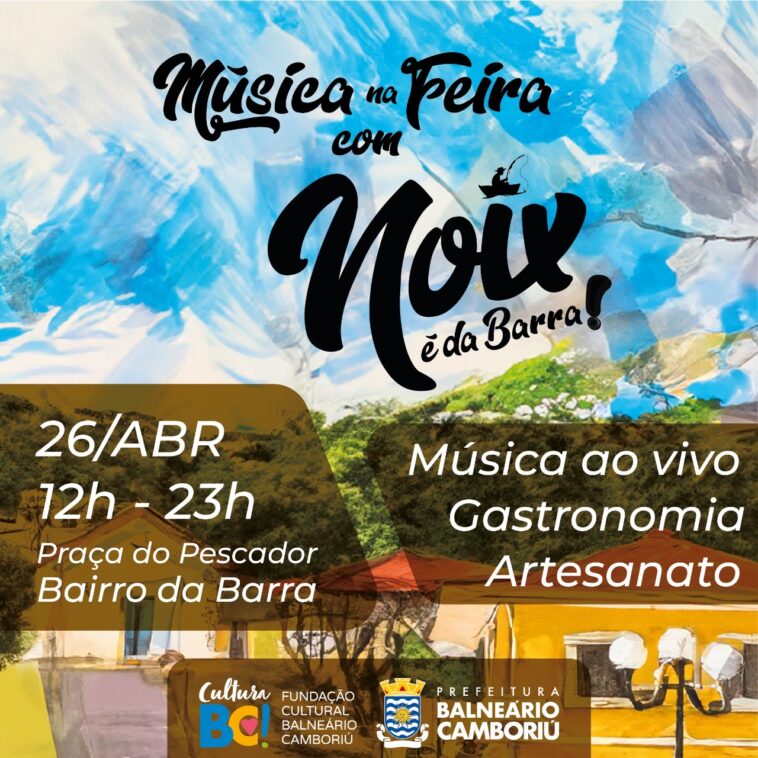 Com uma programação cultural gratuita à população, o evento “Música na Feira com Noix é da Barra” estará de volta à Praça do Pescador neste sábado (26). Serão mais de dez horas de música ao vivo, gastronomia e artesanato, a partir do meio-dia.