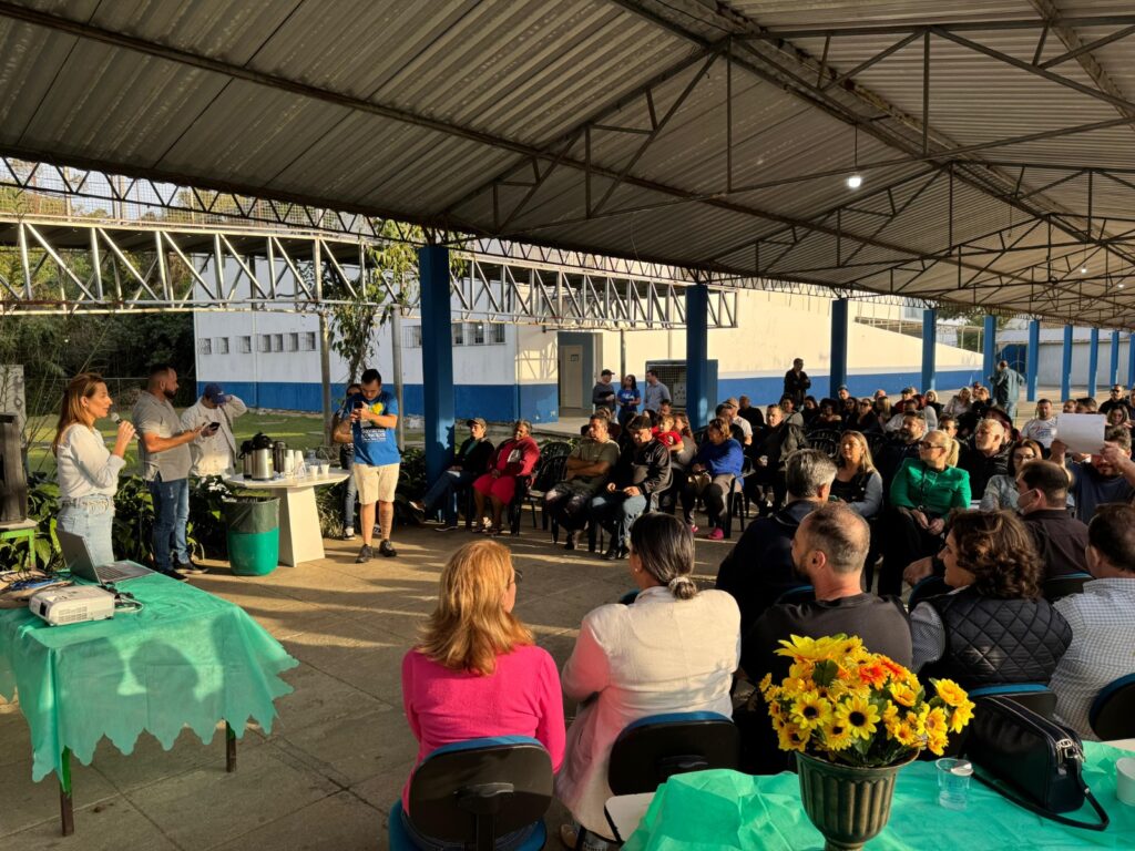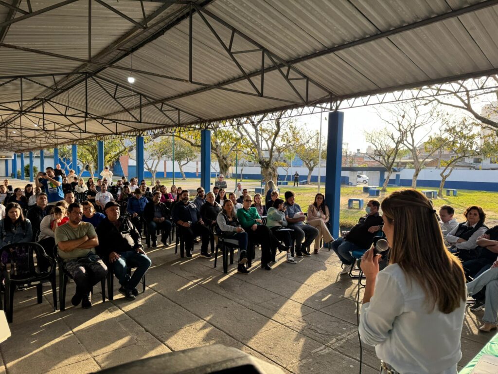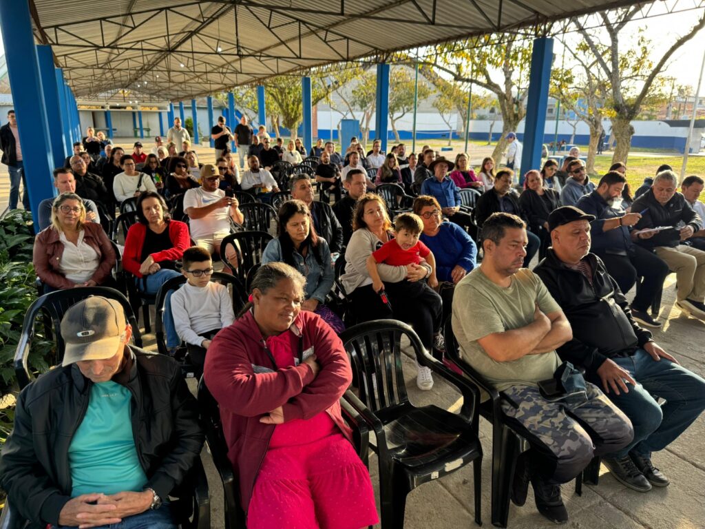 A prefeita Juliana Pavan, acompanhada do vice-prefeito, Nilson Probst, secretários municipais e diretores, participou na tarde deste sábado (2) de uma reunião comunitária realizada no Bairro dos Municípios. O encontro aconteceu no Caic Ayrton Senna e foi intermediado pelo vereador Elton Garcia e pelo morador Ed Carlos Antunes de Castro, que reside no bairro há mais de 40 anos.