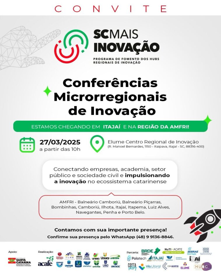 • Inscrição: https://www.sympla.com.br/evento/conferencias-microrregionais-de-inovacao—regiao-amfri/2880786