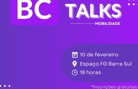 As inscrições são gratuitas e podem ser feitas pelo link: https://www.sympla.com.br/evento/bc-talks-mobilidade/1459427. Mais informações podem ser solicitadas via instagram @inovabc ou @bcinvestimentossa.