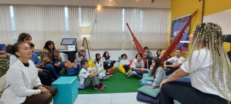 Também estiveram na UDESC Balneário Camboriú, onde foram acolhidas com atividades práticas nos laboratórios de física e geologia, além de uma visita especial à biblioteca universitária, conduzida pela bibliotecária Daniele Lopes, que apresentou o espaço e incentivou o contato com a leitura.