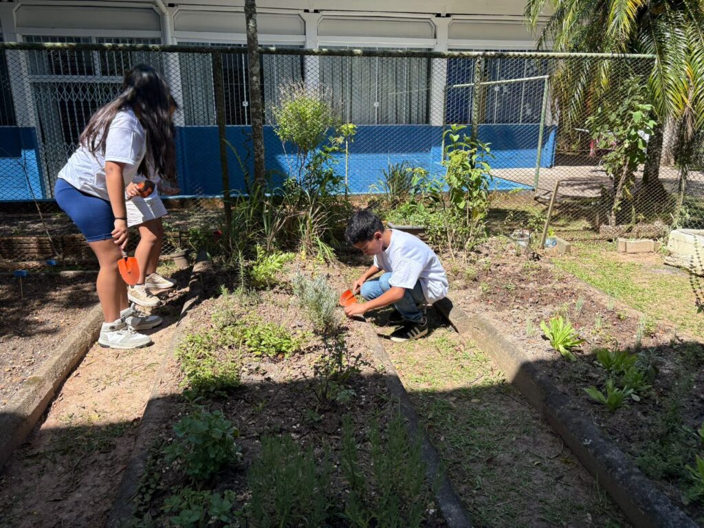 No total, 12 alunos integram a comissão. A rotina inclui, entre outras atividades, o cuidado com a horta da escola (plantio de cenoura, cebola, pimentão, alface e temperos diversos, tudo destinado à cozinha que prepara a merenda escolar) e recolhimento de óleo de cozinha (uma parceria com uma empresa garante que cada litro arrecadado seja trocado por um pacote de sementes). Em 2025, a escola arrecadou mais de 500 litros, que serão destinados ao descarte correto.