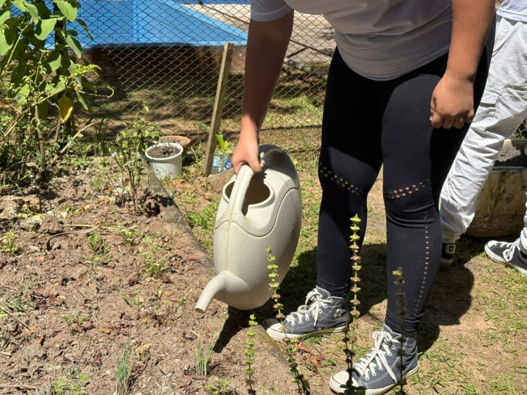 “A cada três meses a gente costuma passar na sala avisando sobre o recolhimento de óleo. As crianças, às vezes, já chegam me procurando e entregando as garrafas. A gente ajuda a cuidar das hortas da escola e todo mundo sabe da importância do projeto. E eu acho que ele tem um grande impacto nessa ajuda ambiental da escola”, comenta a aluna do 9º ano, Maria Eduarda Carvalho dos Santos, que planeja seguir a carreira de bióloga.