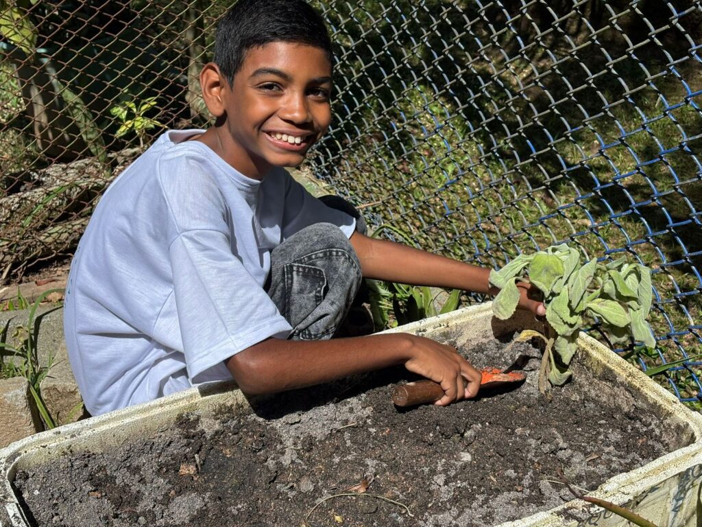 “A gente tem uma harmonia, uma amizade muito grande que faz com que tudo fique mais leve. Desde criança quero ser biólogo, sempre tive uma paixão por aves, e a Com-vida me abriu portas: fazemos passeios, conhecemos muita gente e isso acaba abrindo a nossa visão de mundo”, conta o aluno do 9º ano, Felipe Jurasck Amaral Martins, de 14 anos.