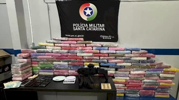 A Polícia Militar de Santa Catarina (PMSC) realizou a apreensão de quase 200 kg de drogas nas últimas 48horas em diversas regiões do Estado. Em Camboriú foram apreendidos 155 quilos de cocaína e uma submetralhadora