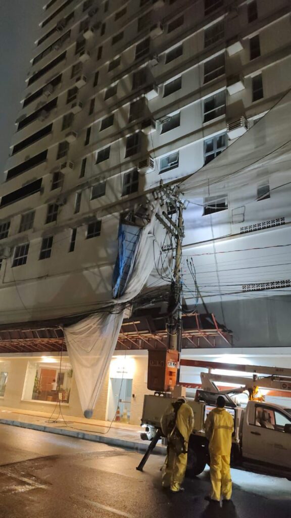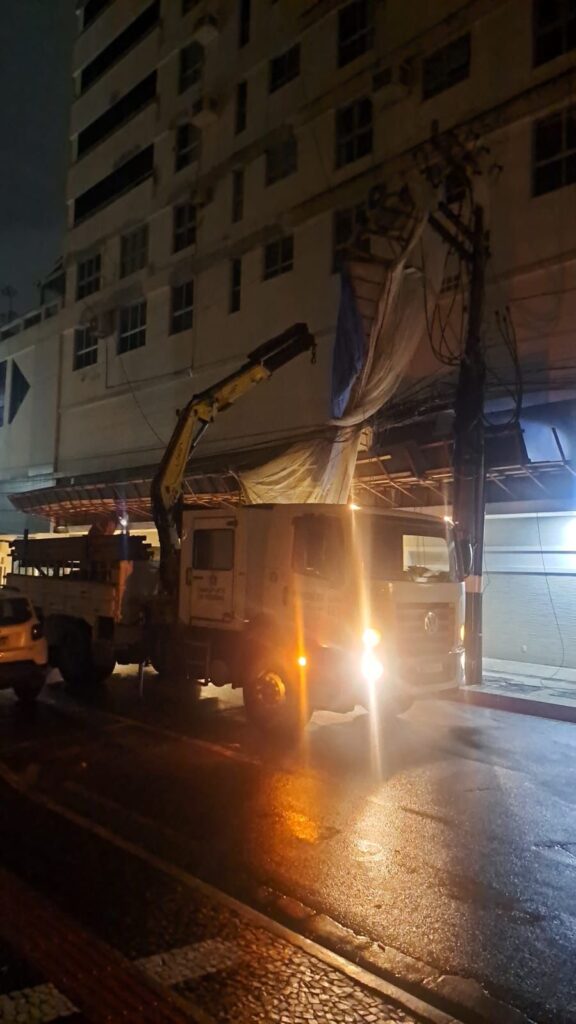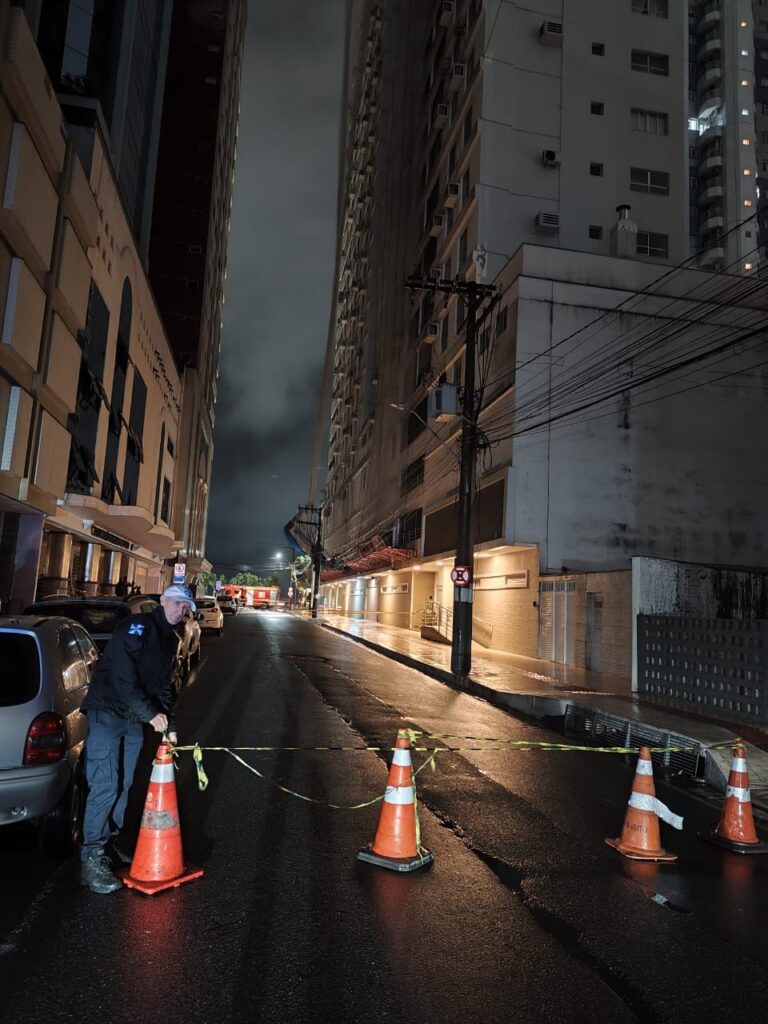 Na noite desta quinta-feira (9), por volta das 20h40, houve a queda de um andaime e telas de proteção sobre a fiação elétrica na Rua 1101, nas proximidades da Avenida Atlântica. A via precisou ser temporariamente interditada pelos Agentes de Trânsito, para garantir a segurança no local.