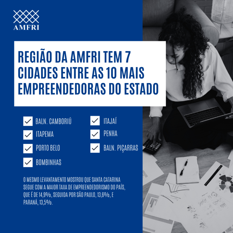 De acordo com o levantamento realizado pelo Observatório de Negócios do Sebrae/SC, 7 municípios localizados na região da AMFRI estão entre os 10 municípios mais empreendedores de Santa Catarina.