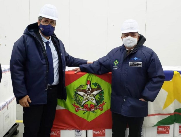 O secretário André Motta Ribeiro classificou o dia como histórico para o Brasil e para Santa Catarina. “Recebemos as doses agora pela manhã durante ato com o ministro da Saúde, Eduardo Pazuello, alinhado ao plano nacional de imunização. Ainda pela manhã, essa carga será recebida pelas equipes da Secretaria da Saúde, em Florianópolis, para separação e catalogação. Estamos iniciando a maior campanha de vacinação da história”, informou.