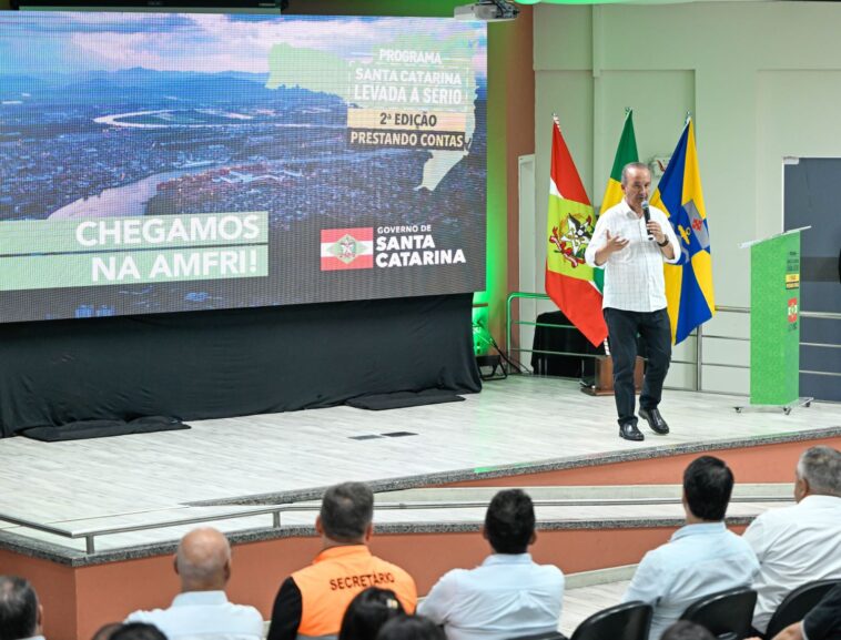 O governador Jorginho Mello apresentou em Itajaí nesta quinta-feira, 27, o programa Santa Catarina Levada a Sério, Prestando Contas e anunciou investimentos para a região da Associação dos Municípios do da Região da Foz do Rio Itajaí (Amfri), reforçando o compromisso com o desenvolvimento regional. A iniciativa irá passar por todas as 21 associações dos municípios de Santa Catarina.