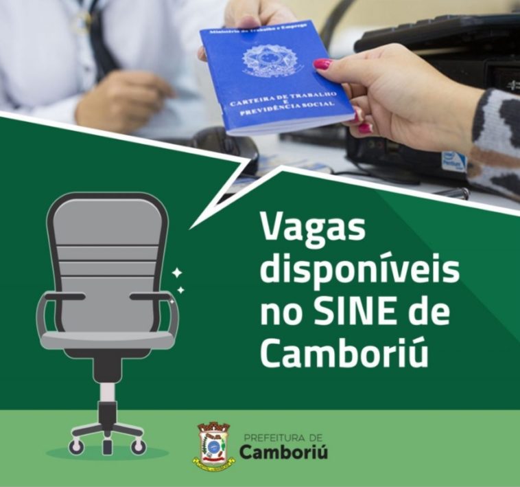 O Sistema Nacional de Emprego (SINE), de Camboriú, divulgou nesta segunda-feira, dia 30, as vagas de empregos no município. Ao total são 54 vagas de trabalho disponíveis. O horário de atendimento é das 12 às 18 horas. Os candidatos devem estar munidos de documentos, como carteira de trabalho e RG para receberem as orientações e encaminhamentos necessários. A instituição está aberta para atendimentos presenciais e segue todas as normas de segurança em saúde para evitar a proliferação do Covid-19.