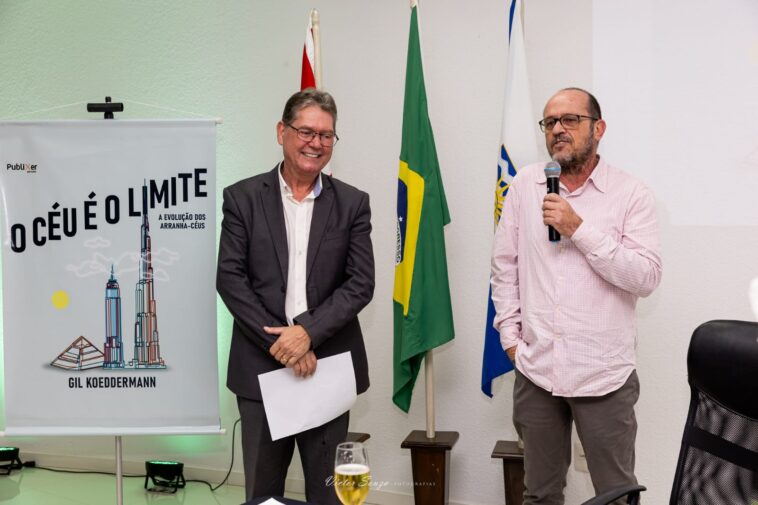 Gil Koeddermann e Bola Teixeira, juntos, formam uma dupla de sucesso. E isso ficou bem evidente nesta noite de terça-feira (23) no lançamento do Livro idealizado por Gil e escrito por Bola, O CÉU É O LIMITE, onde fazem uma interessante narrativa da história das construções de arranha-céus que desafiam o limite das alturas. Como começou e quais fatores foram fundamentais para que a nossa civilização ousasse desafiar o céu como limite para edifícios cada vez mais altos, isso tudo com fotos belísssimas e curiosas dos principais edifícios ao redor do mundo, também fotos do arquivo pessoal de Gil Koeddemann que já viajou pelo planeta buscando conhecer de perto essas maravilhas e, é claro, registrando essa veia construtiva que hoje caracteriza Balneário Camboriú e coloca nossa cidade entre as “top” da construção civil. Muito prestigiado, o lançamento do livro foi um sucesso. Vale a pena você conferir. Parabéns Gil e Bola. Que venham os próximos! A Cultura agradece!