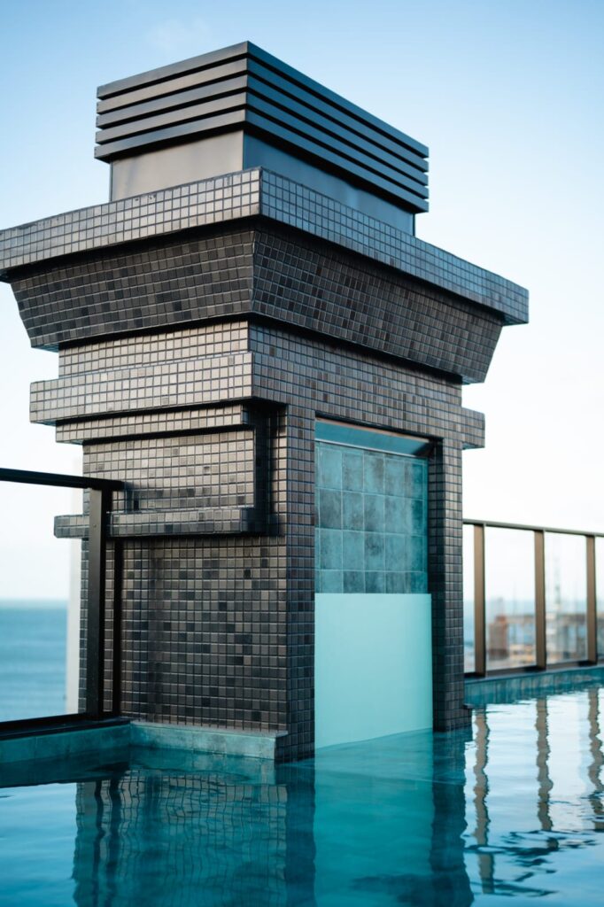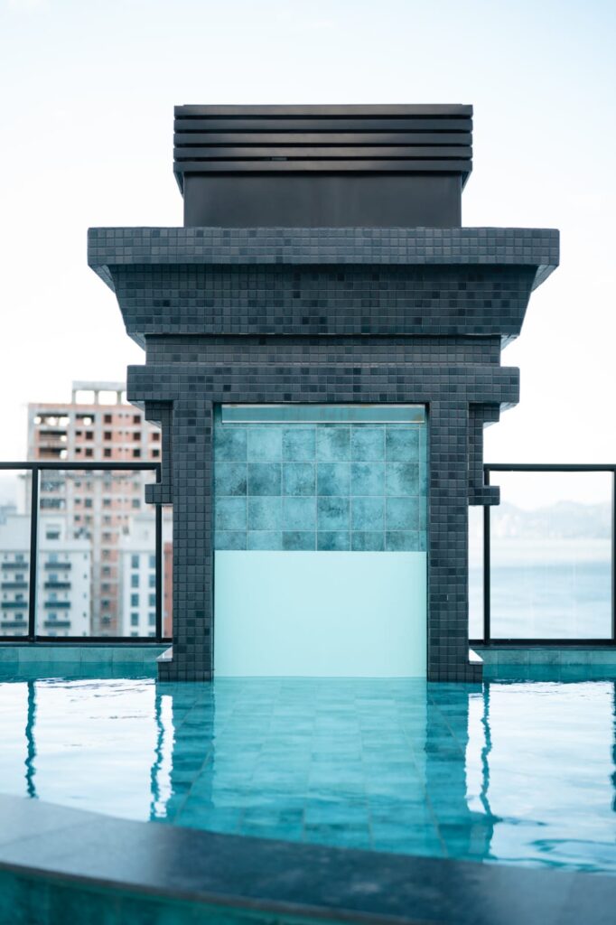 Com 56 apartamentos de três suítes, o projeto combina volumetria marcante, acabamento superior e design contemporâneo. As áreas de lazer, que somam 568 metros quadrados, foram entregues mobiliadas e decoradas, destacando-se pelo cuidado estético — dos revestimentos em pastilhas e porcelanato às portas laqueadas e ao acabamento em gesso.