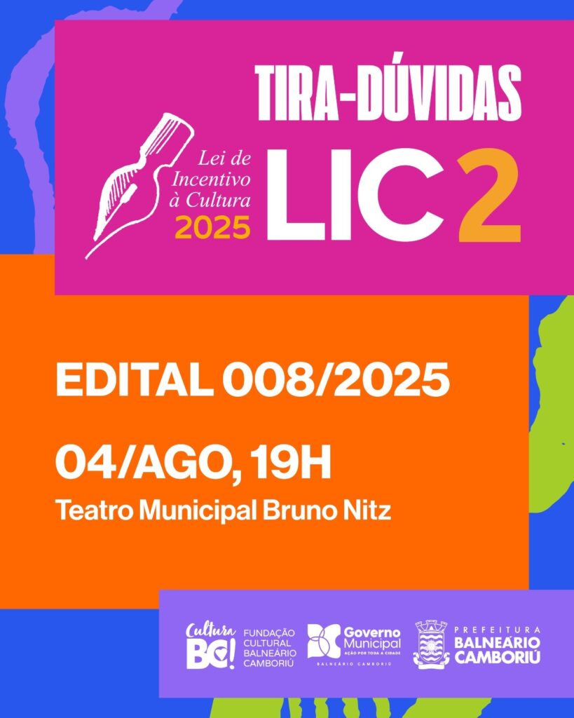 Na segunda-feira (4), às 19h, a Fundação Cultural de Balneário Camboriú utilizará o teatro para tirar dúvidas sobre a edição especial da Lei de Incentivo à Cultura (LIC II), em encontro aberto ao público e gratuito.