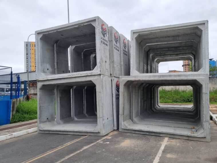 O transporte das 200 primeiras galerias da obra de macrodrenagem norte da Orla da Praia Central inicia nesta quarta-feira (19). As estruturas estão no bairro dos Estados desde outubro, quando foram entregues pela empresa, e serão levadas para o Pontal Norte, por onde a obra começará.