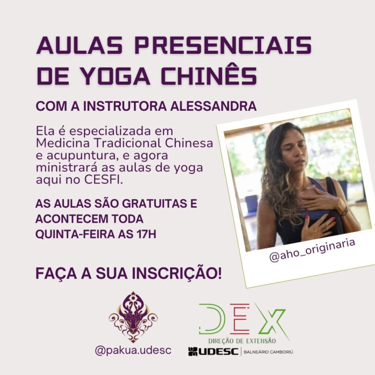 A Universidade do Estado de Santa Catarina, por meio da Direção de Extensão, Cultura e Comunidade da unidade de Balneário Camboriú, está com inscrições abertas para aulas gratuitas de Yoga Chinês. A iniciativa é resultado de uma parceria com o Programa de Extensão Pa-kua UDESC e tem como objetivo promover saúde, bem-estar e qualidade de vida à comunidade.