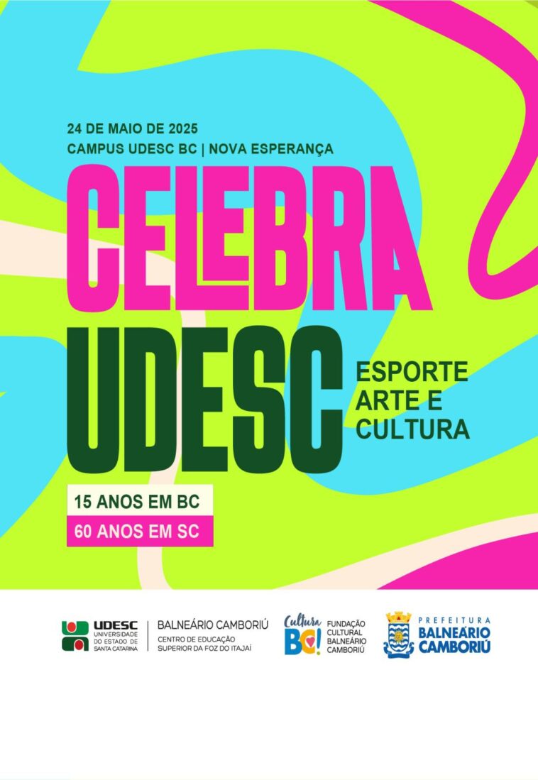O “Celebra Udesc” terá programação gratuita e aberta à comunidade das 11h às 17h. O evento será realizado na Udesc Balneário Camboriú, no bairro Nova Esperança, e contará com apresentações musicais, exposições de arte, artesanato, bazar, praça de alimentação e atividades interativas para pessoas de todas as idades.