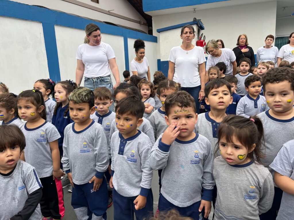 A Prefeitura de Balneário Camboriú, por meio da Secretaria de Educação, preparou uma série de ações nas unidades de ensino do município para celebrar a Semana da Pátria, que encerra com o desfile cívico de 7 de setembro. A programação realizada com alunos e profissionais da educação conta com a entoação do hino nacional, apresentação da banda municipal e até mesmo uma “festa da pátria” com crianças do Núcleo de Educação Infantil (NEI) Carrossel.