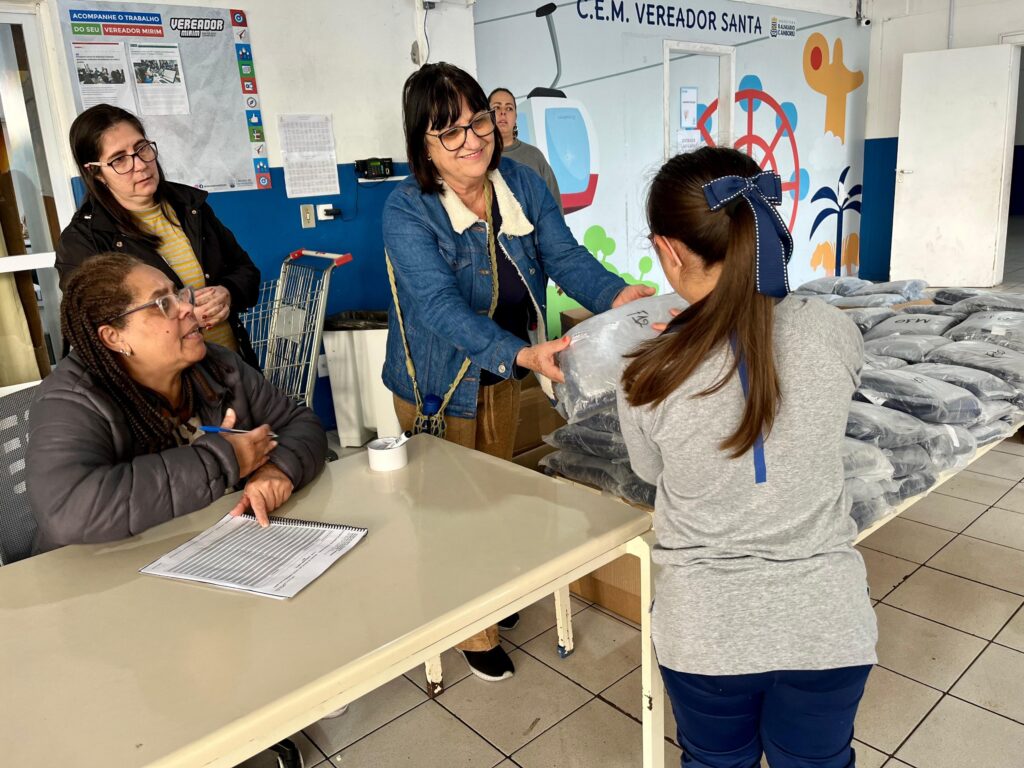 Ao todo, 27 NEIs e 15 escolas da rede municipal receberam as peças. O município investiu R$ 1.580.896,66 nos uniformes de inverno, em kits compostos por duas camisetas, calça masculina ou legging feminina e jaqueta de moletom com zíper.