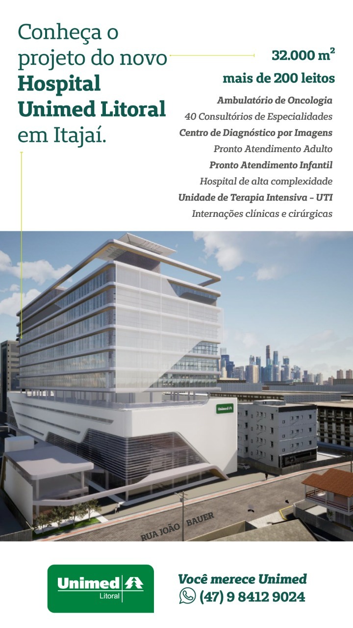 A Unimed Litoral pretende construir seu terceiro hospital, desta vez em Itajaí, no Centro, para atender o crescimento da cooperativa que presta serviços a mais de 100 mil pessoas, nos 13 municípios da região compreendida entre Barra Velha e Bombinhas.