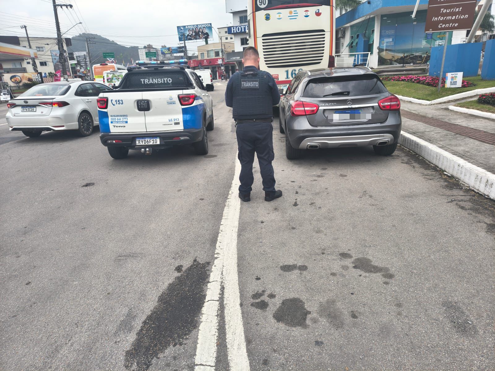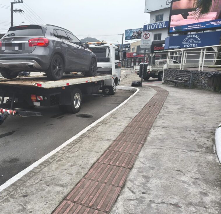 Na tarde desta segunda-feira (6), um Mercedes-Benz GLA 250 foi abordado na Avenida do Estado, em frente ao Portal Turístico de Balneário Camboriú, após o condutor ser flagrado manuseando o celular enquanto dirigia.